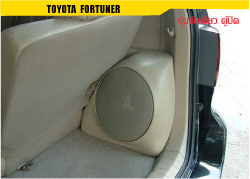 ขายตู้ซับสำเร็จรูปไฟเบอร์กลาสของ flat-design ในรถ TOYOTA FORTUNER ใส่ซับ 10 นิ้ว 1 ดอก มีทั้งแบบตู้เปิดและแบบตู้ปิด โค้งมนเข้ารูป ประหยัดเนื้อที่ เน้นประโยชน์ใช้สอยเป็นหลัก