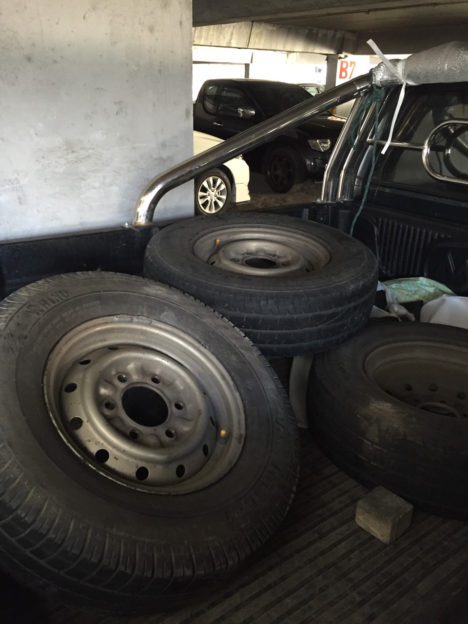 ล้อกระทะ 4 ล้อ ขอบ14 ถอดจากกระบะ Isuzu ไม่ดุ้งไม่คด พร้อมยาง2 เส้น70% สนใจต่อรองราคากันได้ครับ