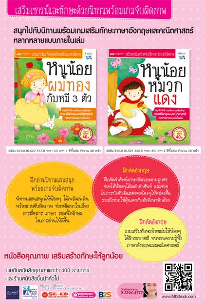 สนุกไปกับนิทานพร้อมเกมเสริมทักษะภาษาอังกฤษและคณิตศาสตร์หลากหลายแบบภายในเล่ม ราคาพิเศษเพียง เล่มละ 40 บาท