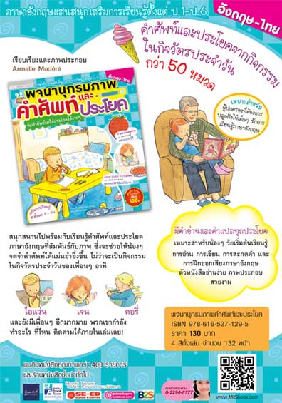 คำศัพท์และประโยคจากกิจกรรมในกิจวัตรประจำวันกว่า 50 หมวด สนุกสนานไปกับการเรียนรู้คำศัพท์และประโยคภาษาอังกฤษที่สัมพันธ์กับภาพ ซึ่งจะช่วยให้น้อง ๆ จดจำคำศัพท์ได้แม่นยำยิ่งขึ้น เหมาะสำหรับน้อง ๆ วัยเริ่มต้นเรียนรู้การอ่าน การเขียน การสะกดคำ และการฝึกออกเสียงภาษาอังกฤษ ตัวหนังสืออ่านง่าย ภาพประกอบสวยงาม ราคาพิเศษเพียง เล่มละ 130 บาท