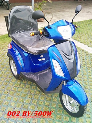 รหัส 002 BY /500 w วัตต์ ราคา 34,500 บ. เป็นรถ 3 ล้อ 1 ที่นั่ง เบาะยาวเพิ่มขึ้น 50 เปอร์เซ็น ขับเคลื่อนล้อหลังระบบเฟืองท้าย เพิ่มระบบความเร็วพิเศษ พร้อมกุญแจล็อคระบบ