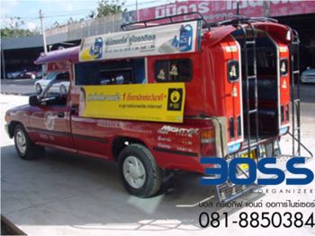 ให้เช่า: สื่อท้ายรถตุ๊กๆ ป้ายท้ายรถตุ๊กๆ สื่อติดรถสองแถว ป้ายข้างรถสองแถว (081-8850384 คุณเก่ง |